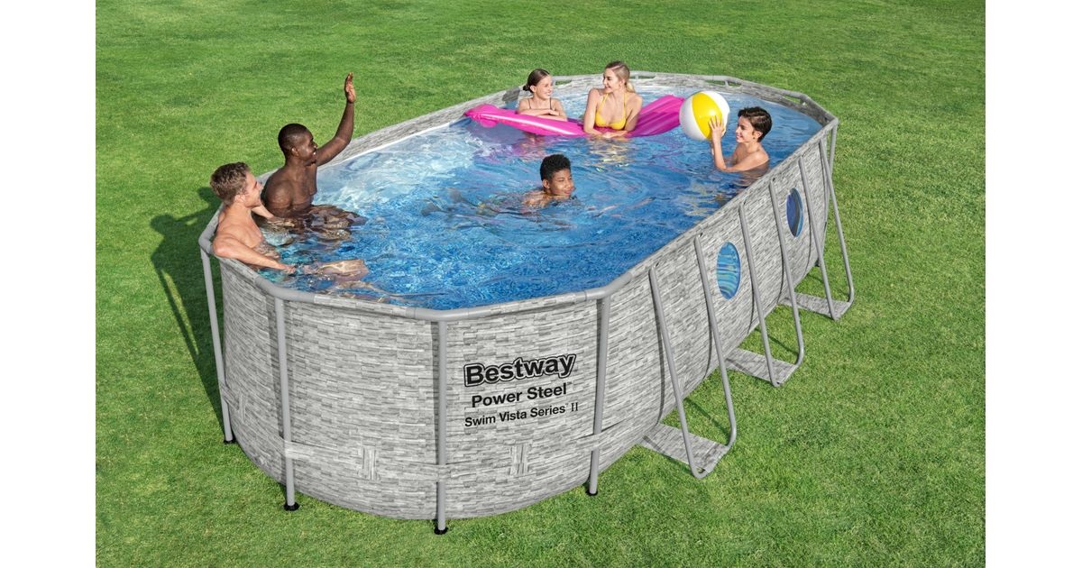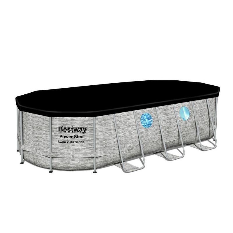 Piscina structura metalica, ovala, cu filtru, pompa, scara, dozator, gri, 549x274x122 cm, Bestway Power Steel