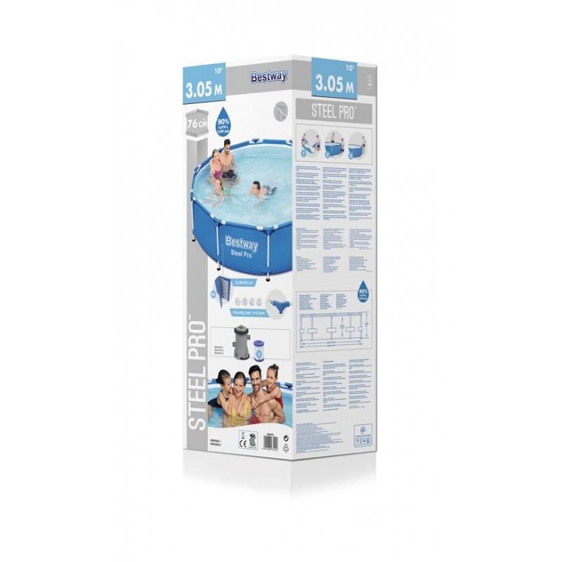 Piscina structura metalica, rotunda, cu filtru, albastru, 305x76 cm, Bestway Steel Pro