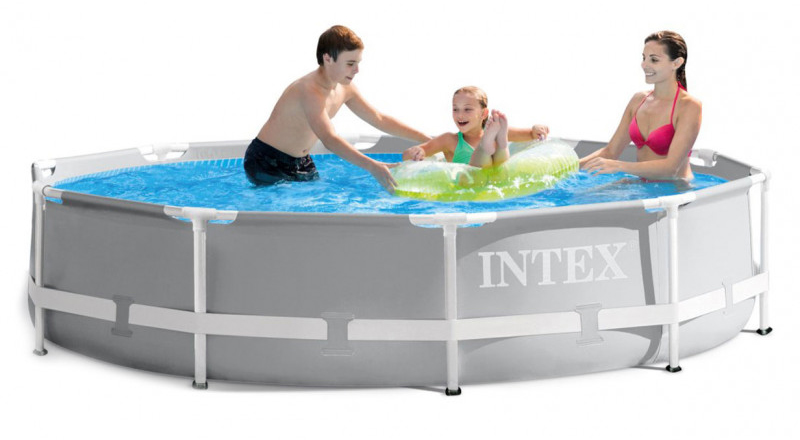 Piscina structura metalica, rotunda, cu filtru, pompa, gri, 305x76 cm, Intex Prism Frame