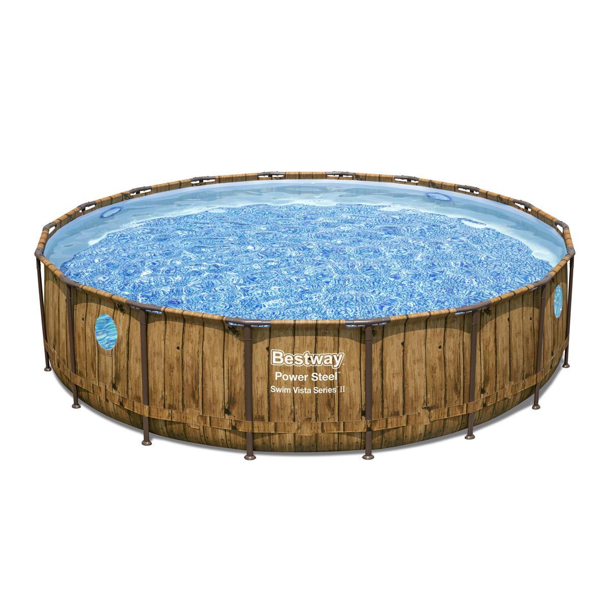 Piscina structura metalica, rotunda, cu filtru, pompa, scara, dozator, prelata acoperire, model lemn, maro, 549x122 cm, Bestway Power Steel