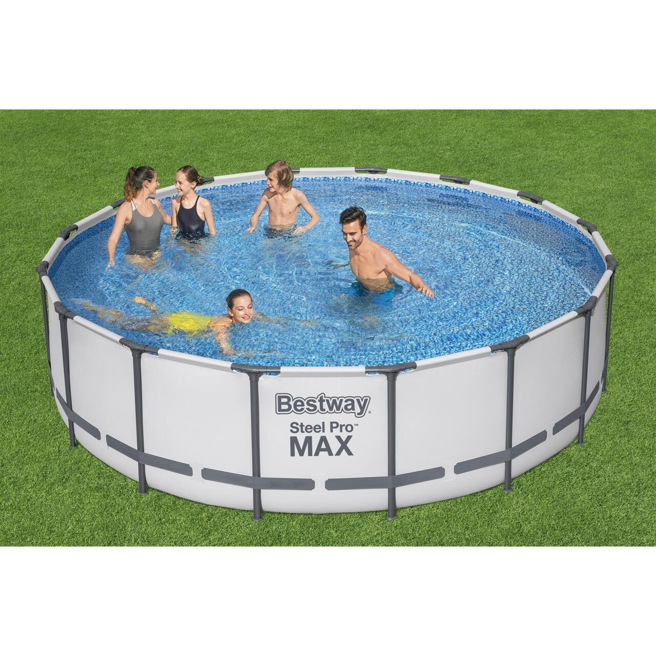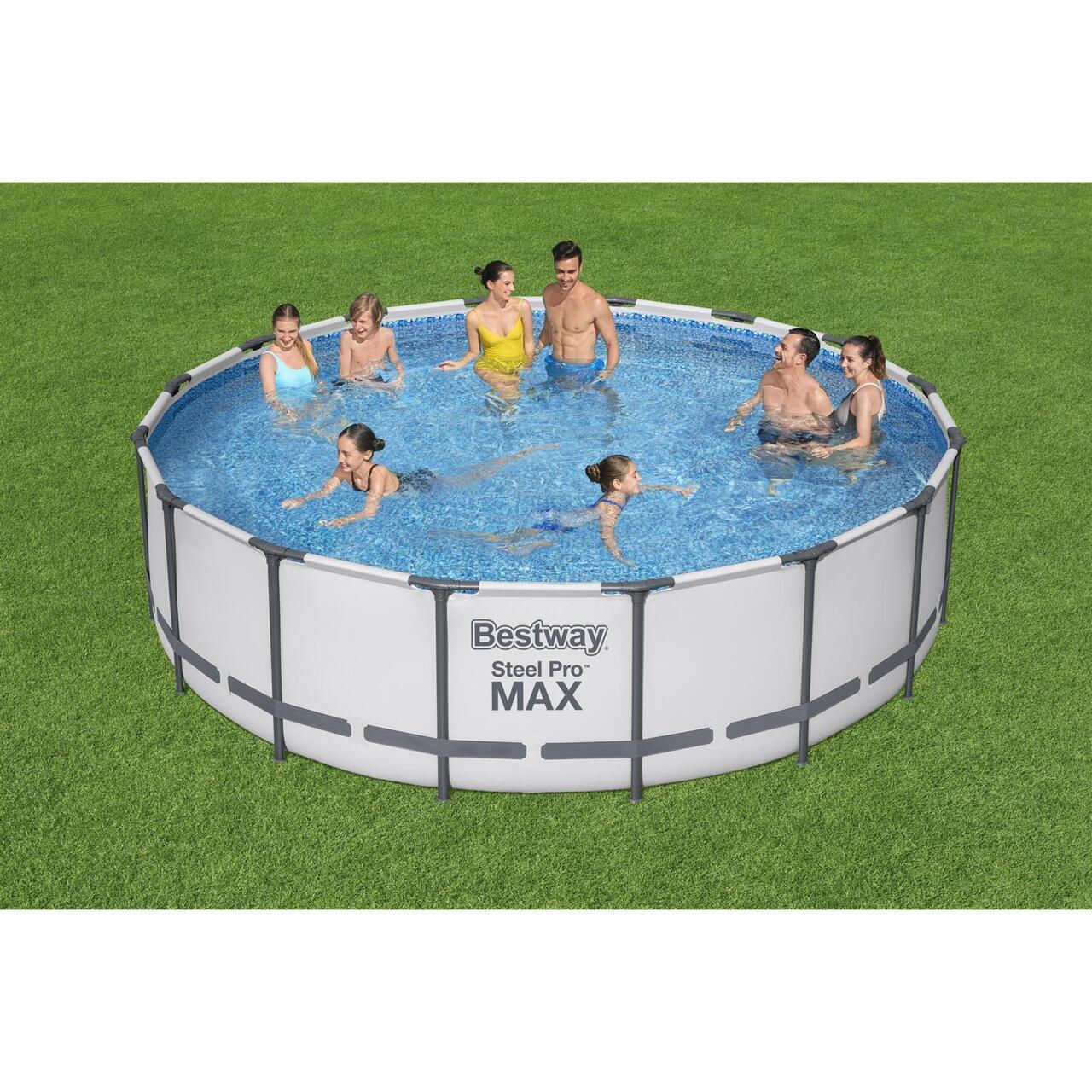 Piscina structura metalica, rotunda, cu filtru, pompa, scara, prelata acoperire, gri, 488x122 cm, Bestway Steel Pro