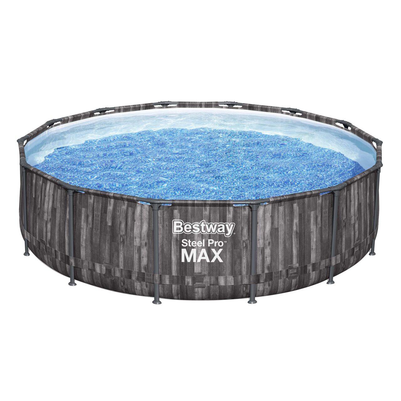 Piscina structura metalica, rotunda, cu filtru, pompa, scara, prelata acoperire, model lemn, gri, 427x107 cm, Bestway Steel Pro