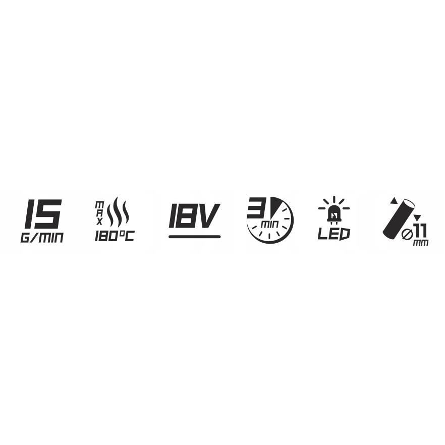 - Compatibil cu adezivi topiti la cald cu diametrul de 11 mm
