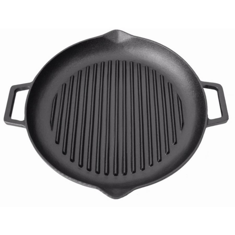 Placa gratar, fonta, rotunda, cu manere si cioc, 33.5x4.5 cm, Perfect Home