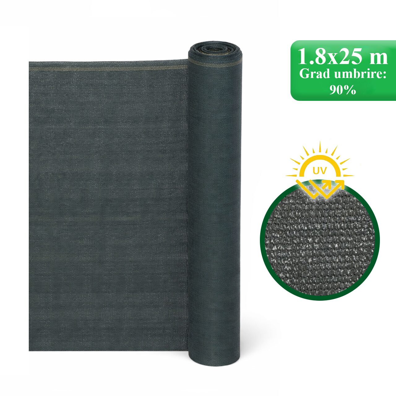 Plasa de umbrire, HDPE, UV, 150 g/mp, grad umbrire 90%, antracit, 1.8x25 m, Strend Pro