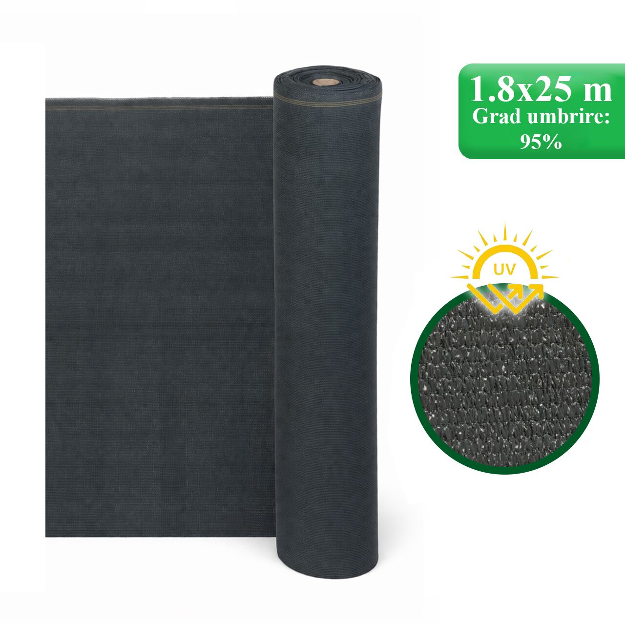 Plasa de umbrire, HDPE, UV, 230 g/mp, grad umbrire 95%, antracit, 1.8x25 m, Strend Pro