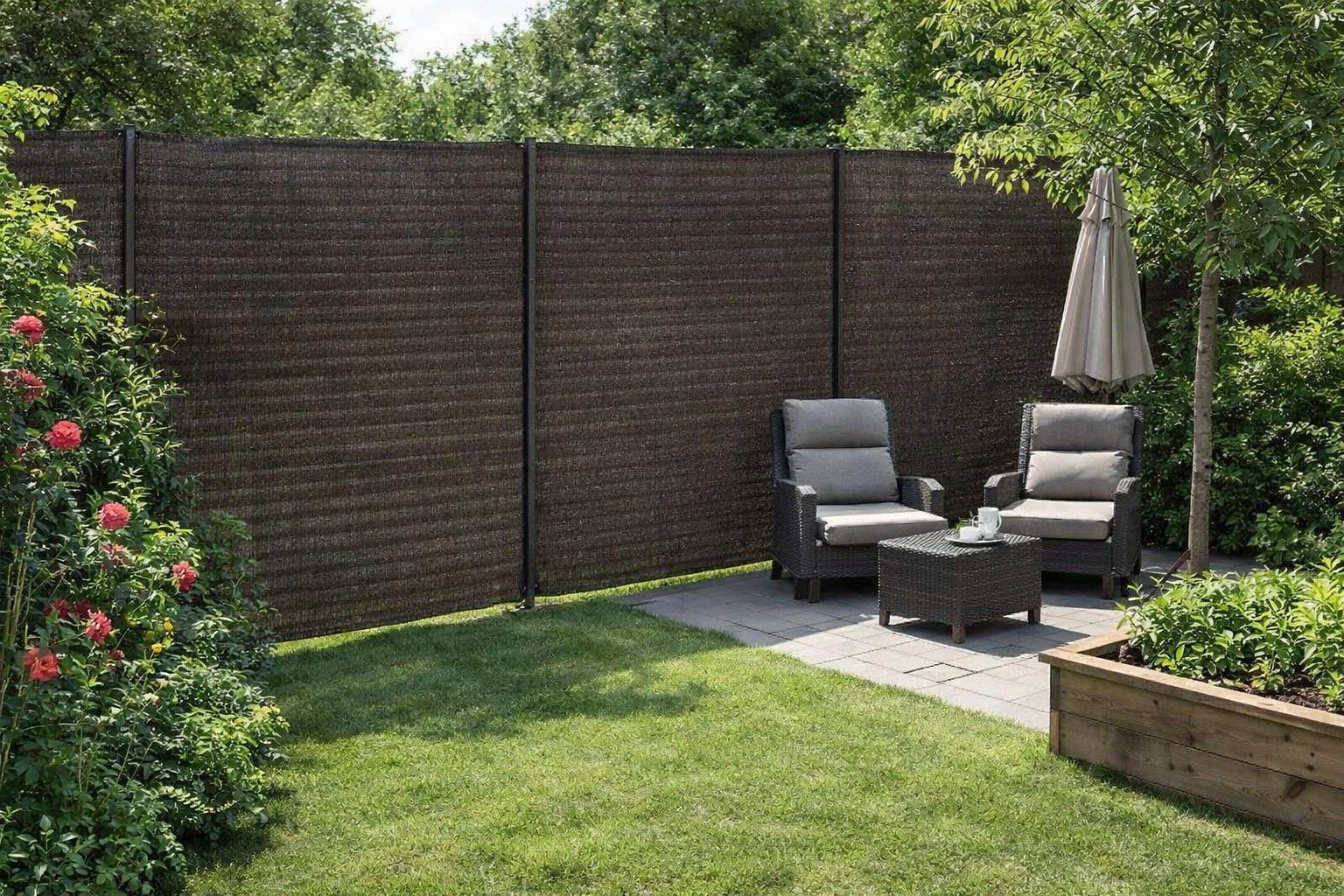 - Protectie completa: Ofera umbra eficienta si intimitate, protejand in acelasi timp si impotriva vantului puternic