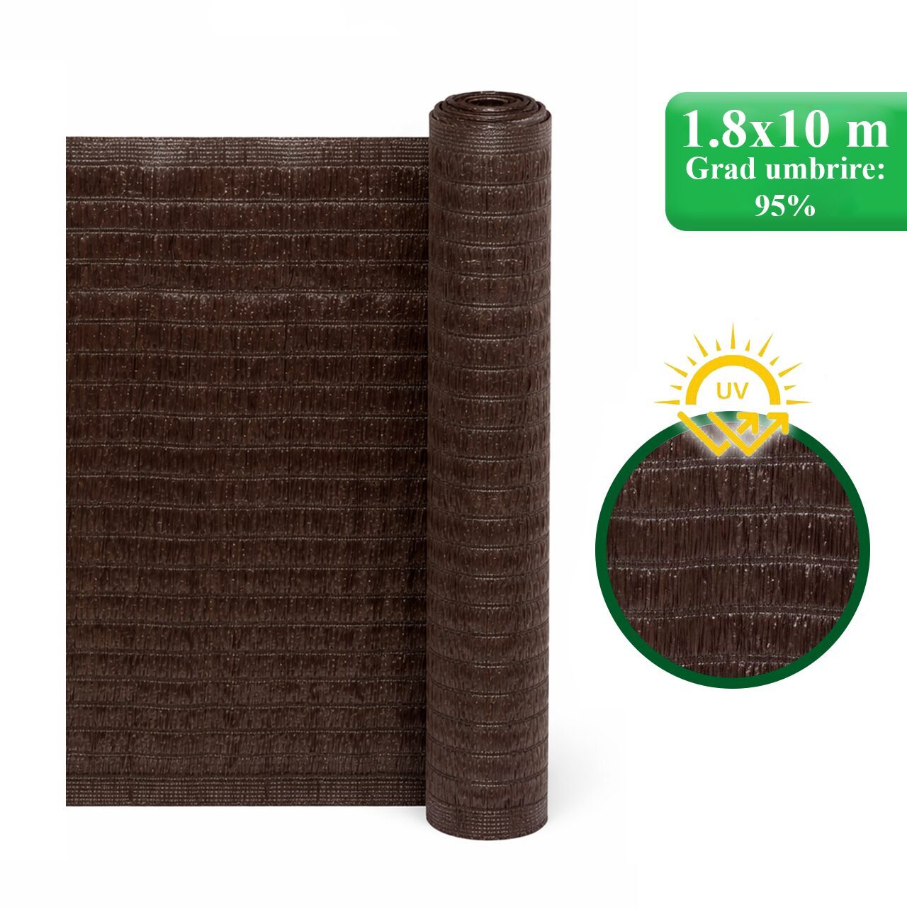 Plasa de umbrire, HDPE, UV, 230 g/mp, grad umbrire 95%, maro, 1.8x10 m, Strend Pro