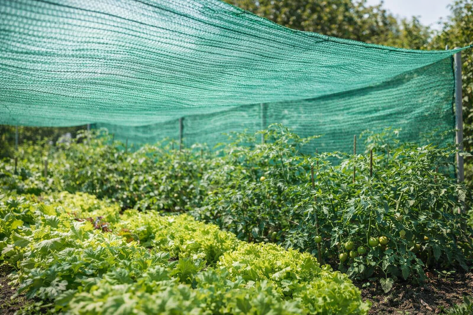 - Protectie optima: Ofera umbra moderata, prevenind arsurile solare si sustinand o crestere sanatoasa a plantelor/legumelor