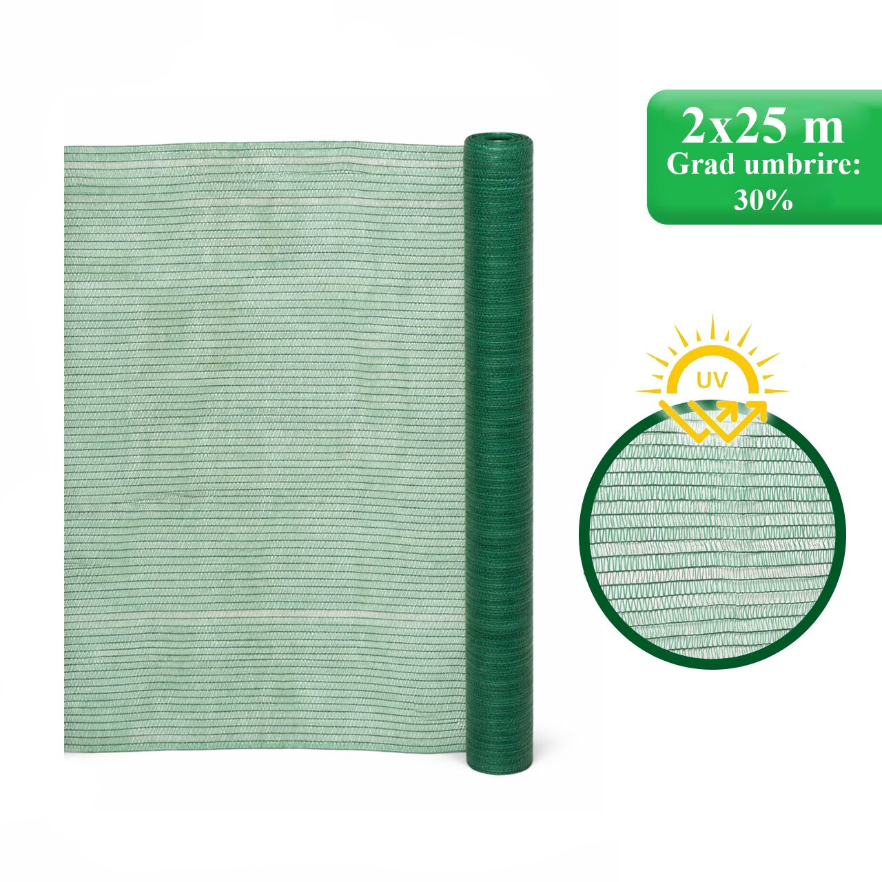Plasa de umbrire legume, HDPE, UV, 30 g/mp, grad de umbrire 30%, verde, 2x25 m, Strend Pro
