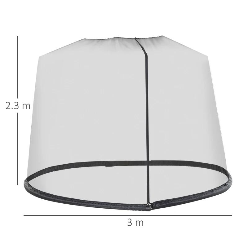 Aceasta plasă se montează ușor peste partea superioară a umbrelei și o înconjoară pe toate laturile, permițându-vă să vă bucurați de mese, lectură sau relaxare în aer liber în zilele frumoase de vară.