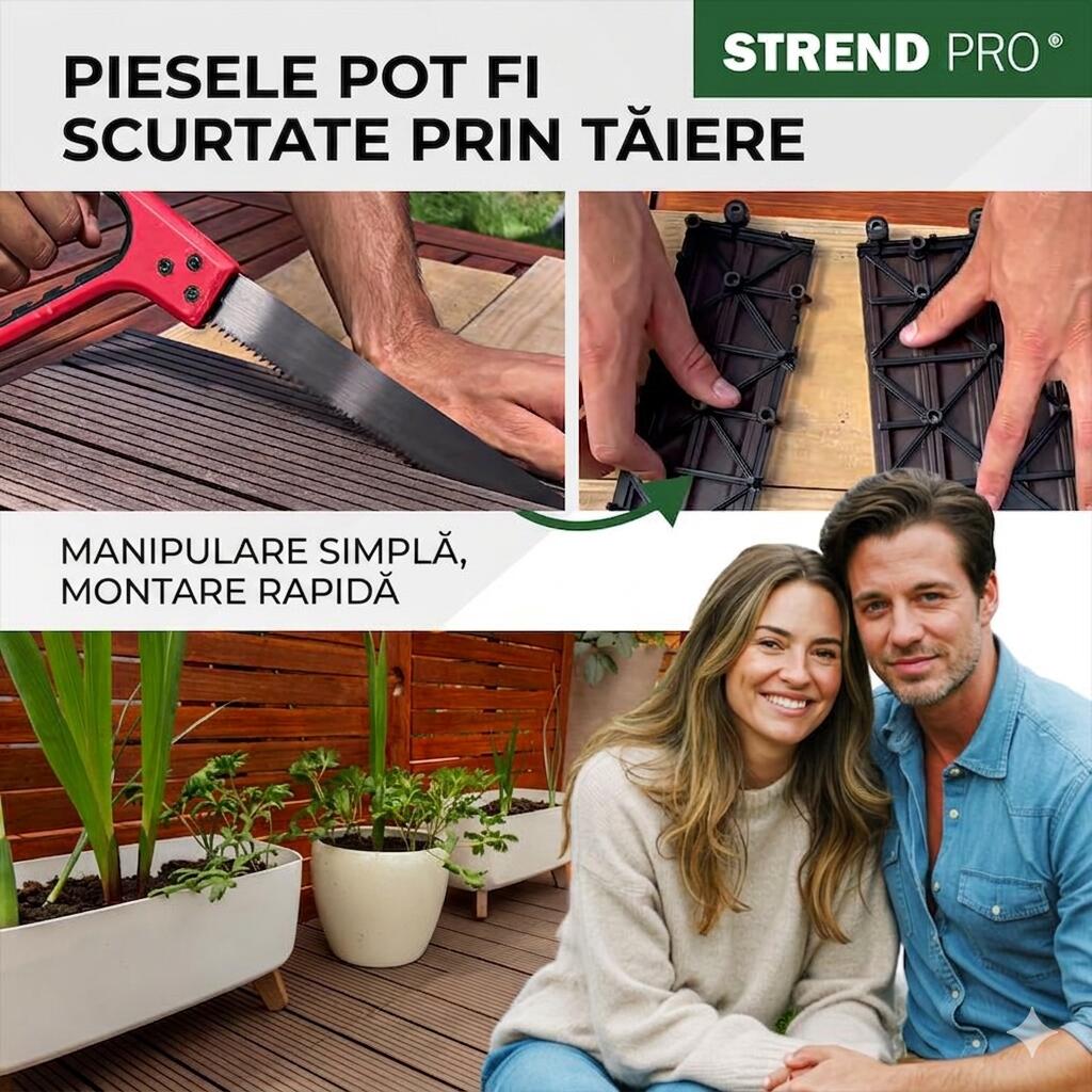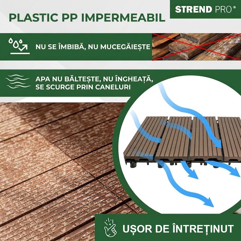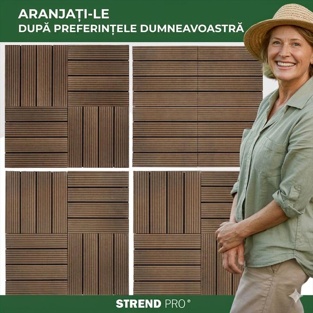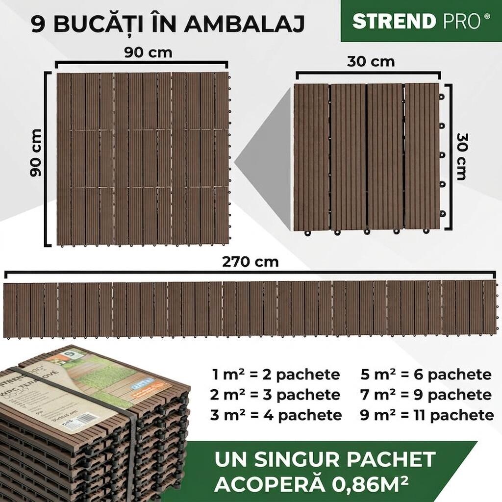 Podea de gradina din plastic, set 9 buc, 31x31 cm, maro inchis, Strend Pro