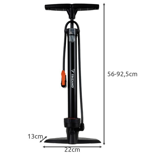 Pompa de picior, cu manometru, 3 varfuri, max 16 bar, 22x13x56-92.5 cm, Trizand