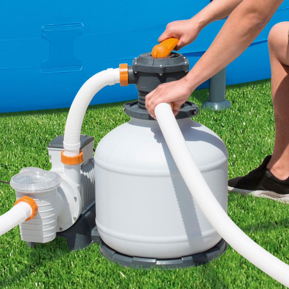 Pompa de filtrare cu nisip Flowclear de la Bestway® este un mod extrem de eficient si ecologic de a mentine apa curata in piscina.