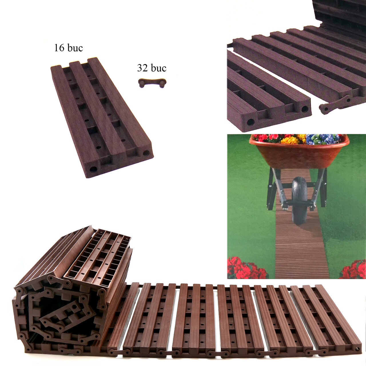 Poteca de gradina 30x8.5 cm, 16 buc, lungime totala 140 cm, PP este o modalitate excelenta de a crea o cale eleganta si rustica prin curtea dvs. prin costuri si eforturi minime.