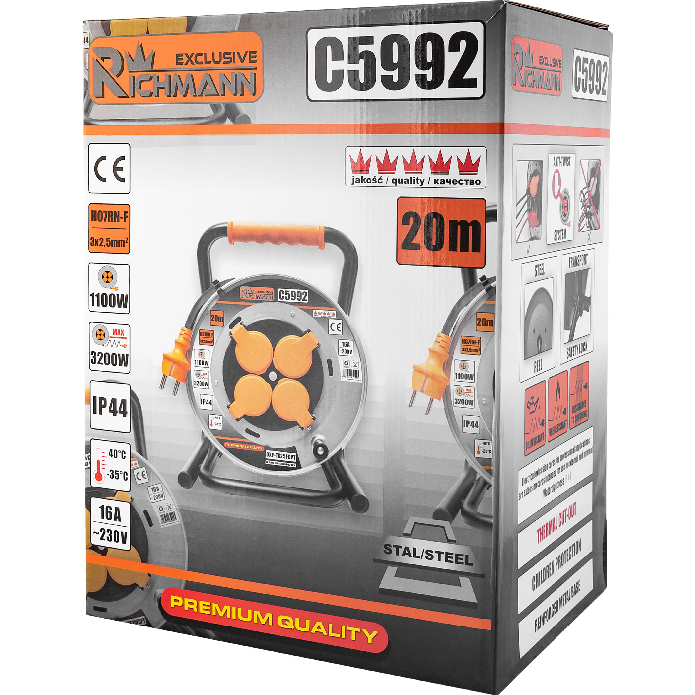 Prelungitor electric industrial, pe tambur, 16 A, 3x2.5 mm², IP44, 20 m, Richmann Exclusive