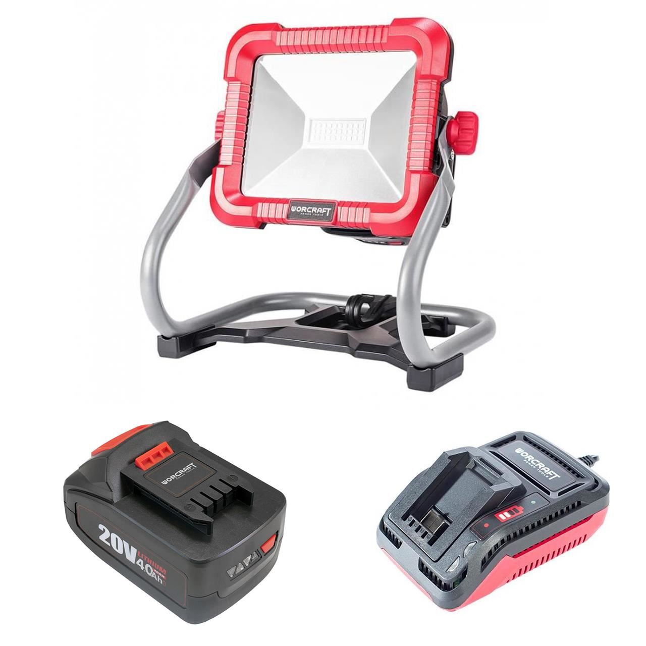 Proiector lucru, LED, cu acumulator 4 Ah, incarcator 20V Li-Ion, 30 W, 1000/2000/3000 lm, Worcraft