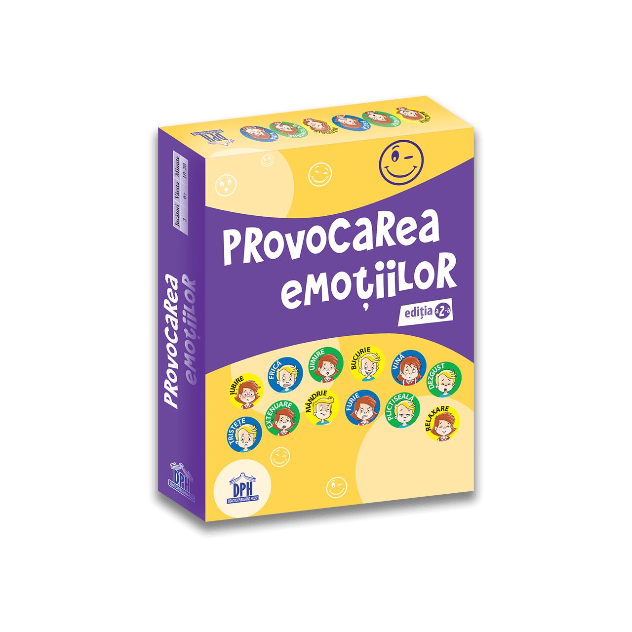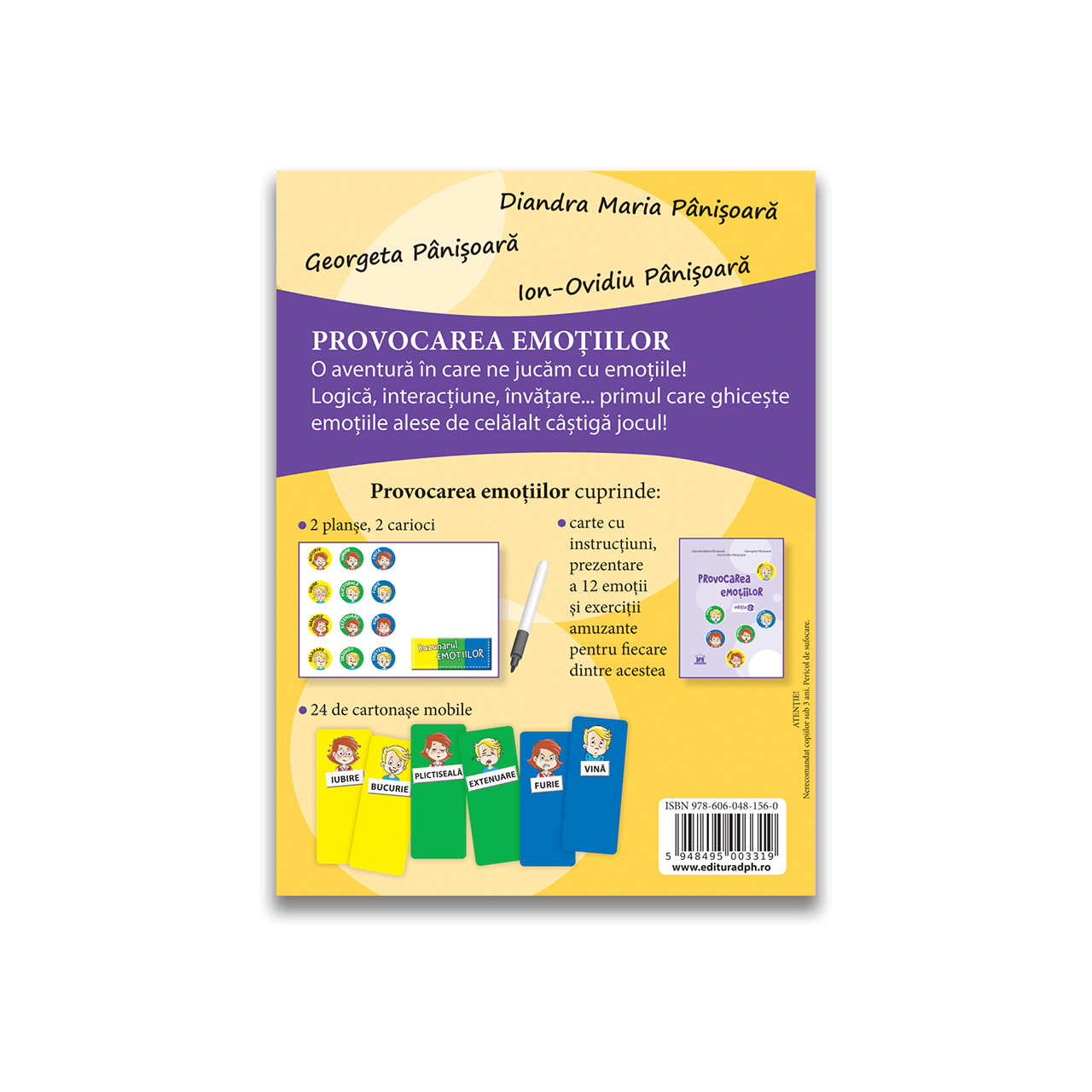 - carte cu instructiuni, prezentare a 12 emotii si exercitii amuzante pentru fiecare dintre acestea