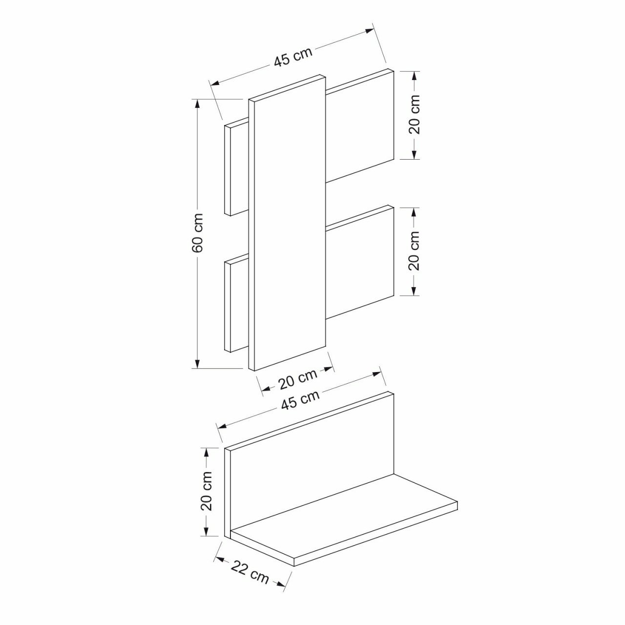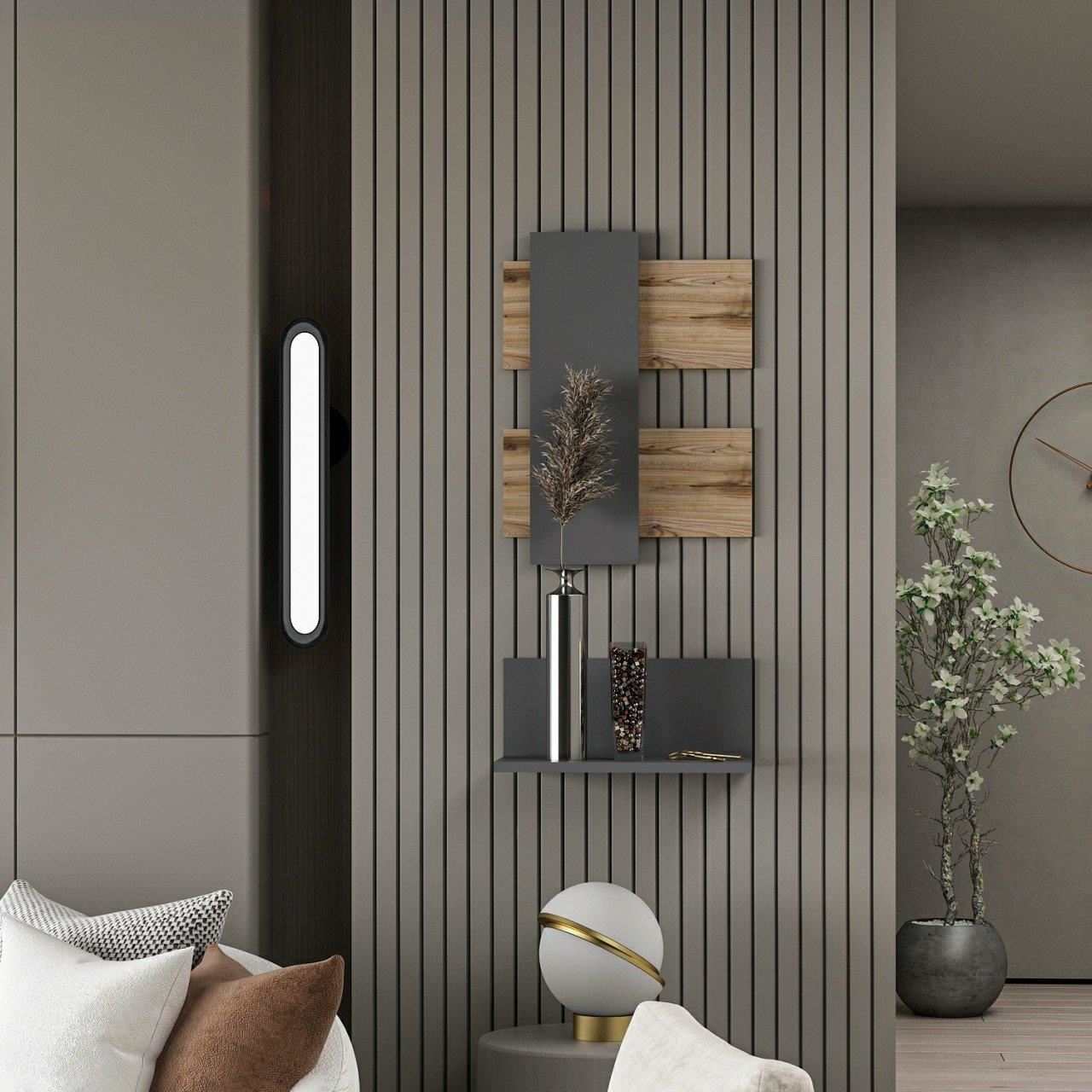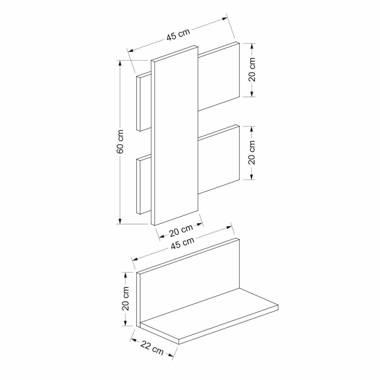 Raft de perete suspendat, pal melaminat, natur si antracit, 45x22x20 cm/45x60 cm, Bella, Minar
