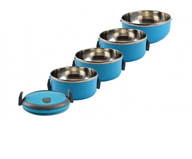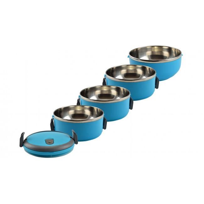 Recipiente pentru transport mancare, plastic, set 4 buc, albastru, 4x500 ml, Perfect Home