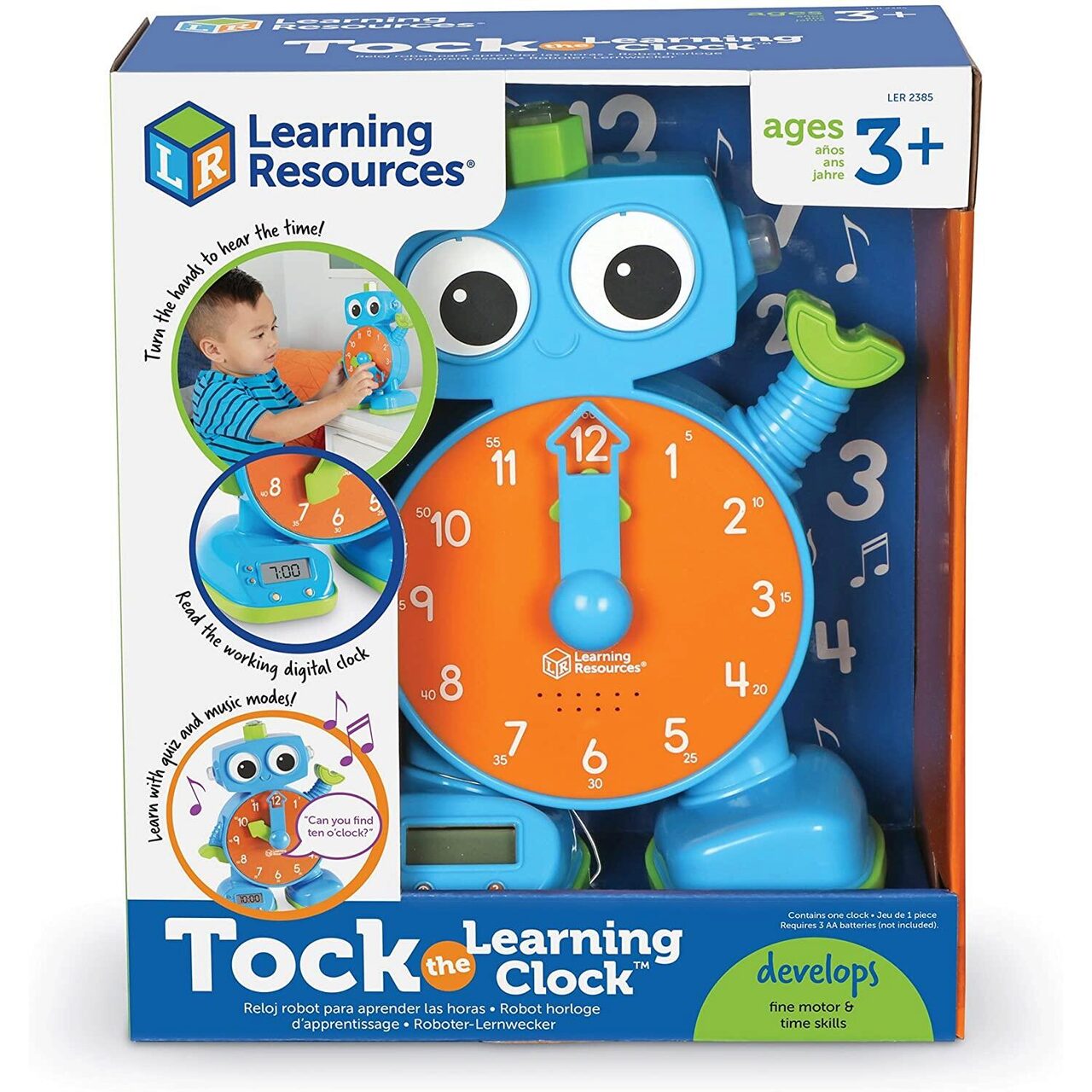- copilul poate roti singur minutarul pentru a potrivi ceasul, iar robotelul Tic-Tac va afisa ora si minutele in format digital si va rosti ora in limba engleza
