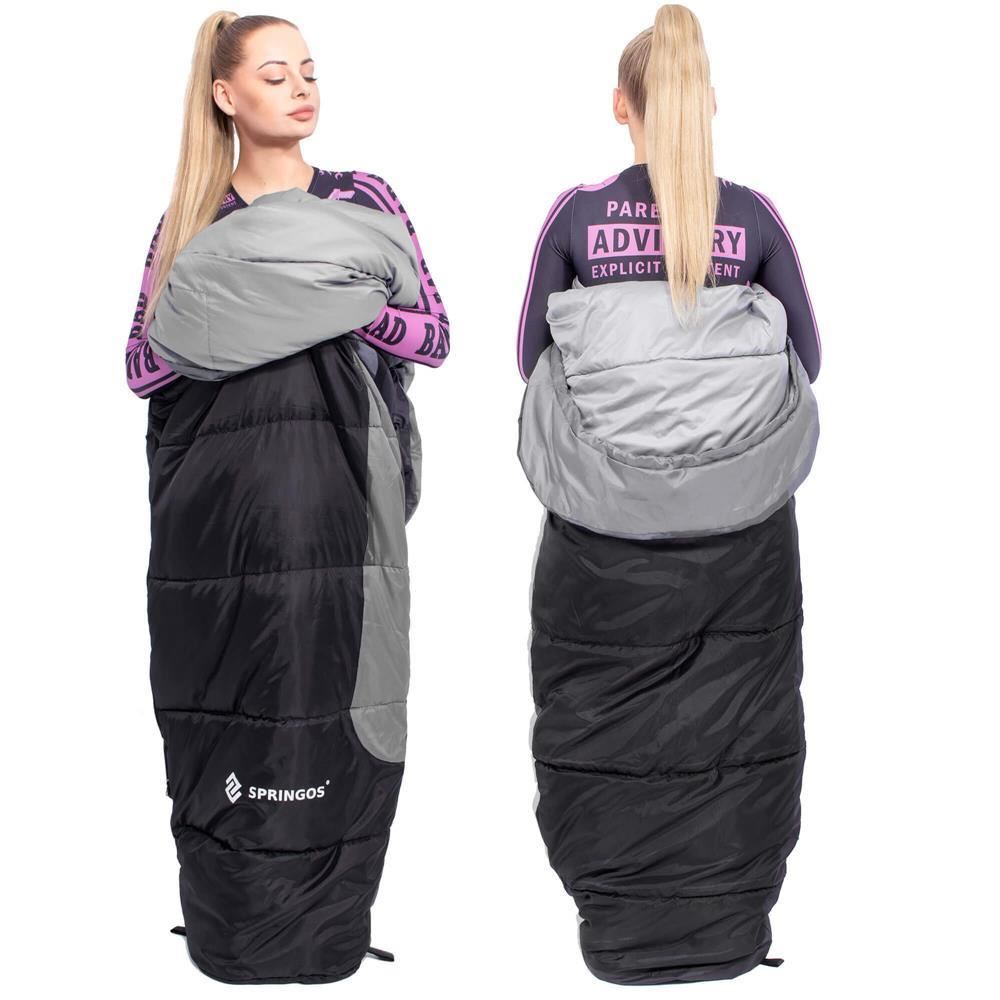 Sac de dormit, turistic, negru si gri, 220x50/80 cm, Springos