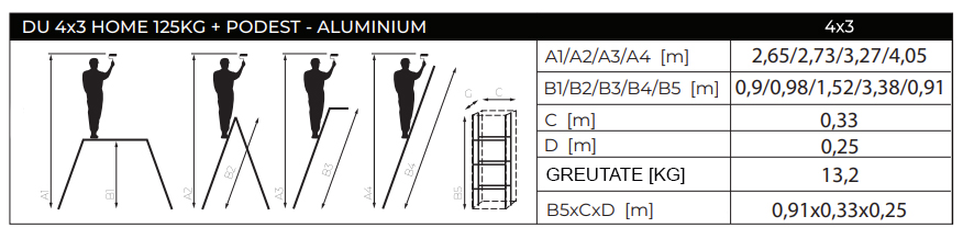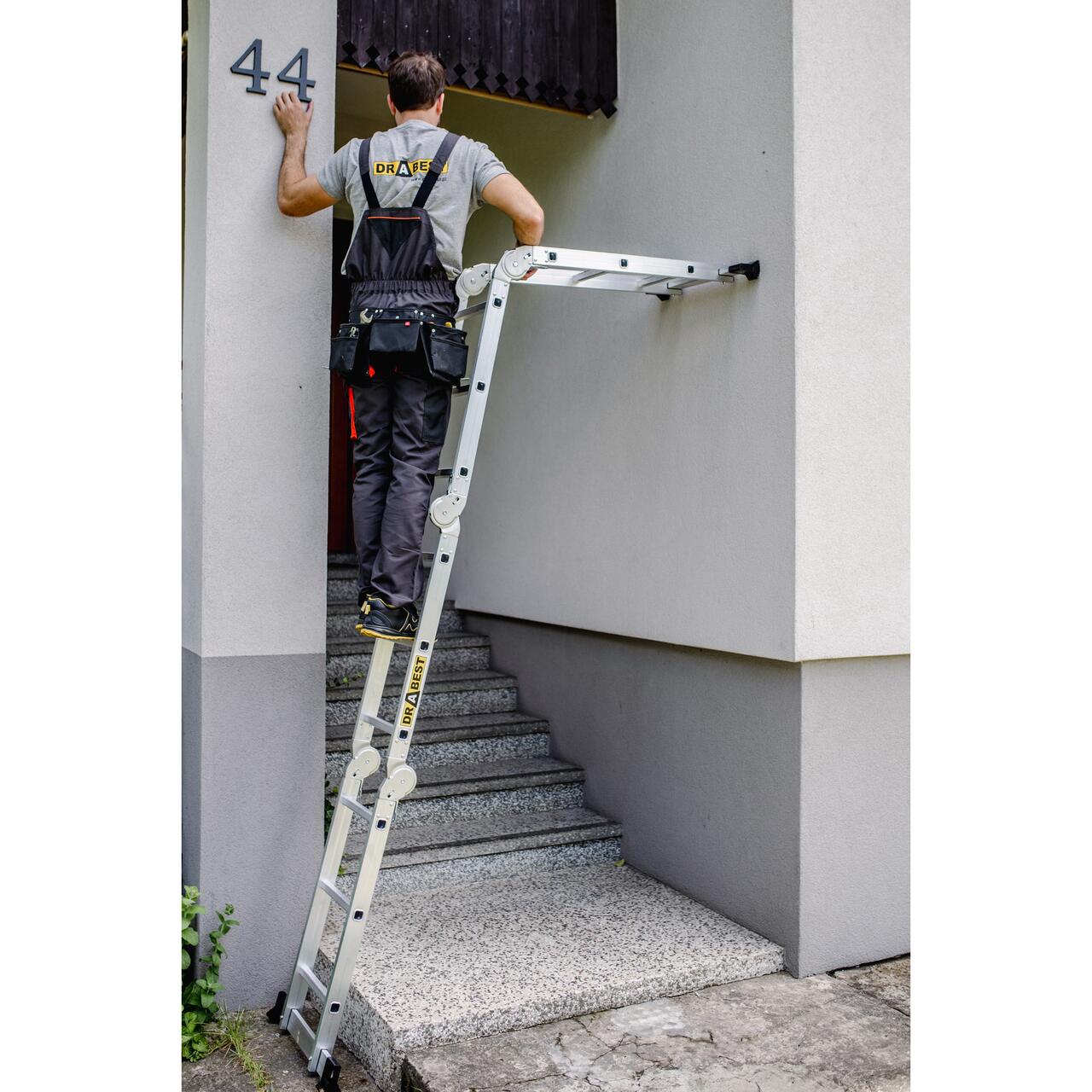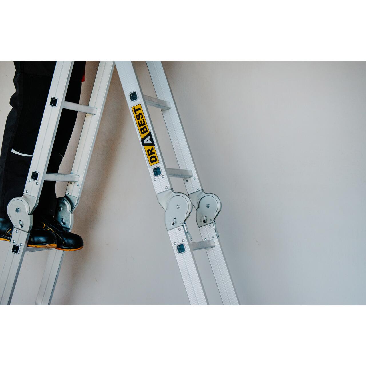 Scara aluminiu, multifunctionala, rabatabila, 4 tronsoane, 3 trepte, max 125 kg, 0.91-3.38 m, Drabest