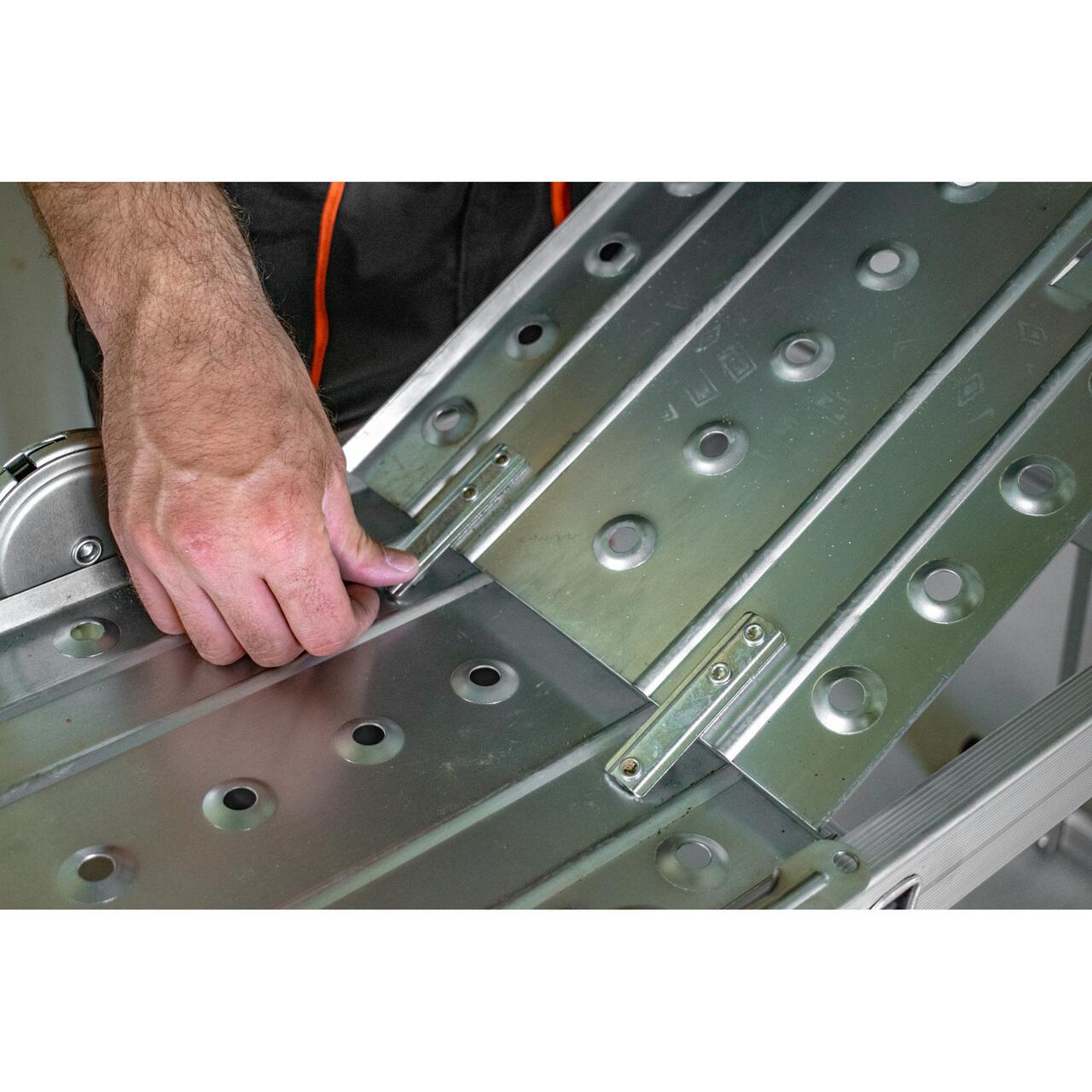 - Platforma atasata scarii este formata din doua elemente de otel care, odata instalate, permit ca scara sa fie folosita ca platforma stabila. Acest element suplimentar nu numai ca mareste functionalitatea scarii, dar asigura si confort si siguranta in timpul lucrului care necesita o sedere mai lunga la inaltime.