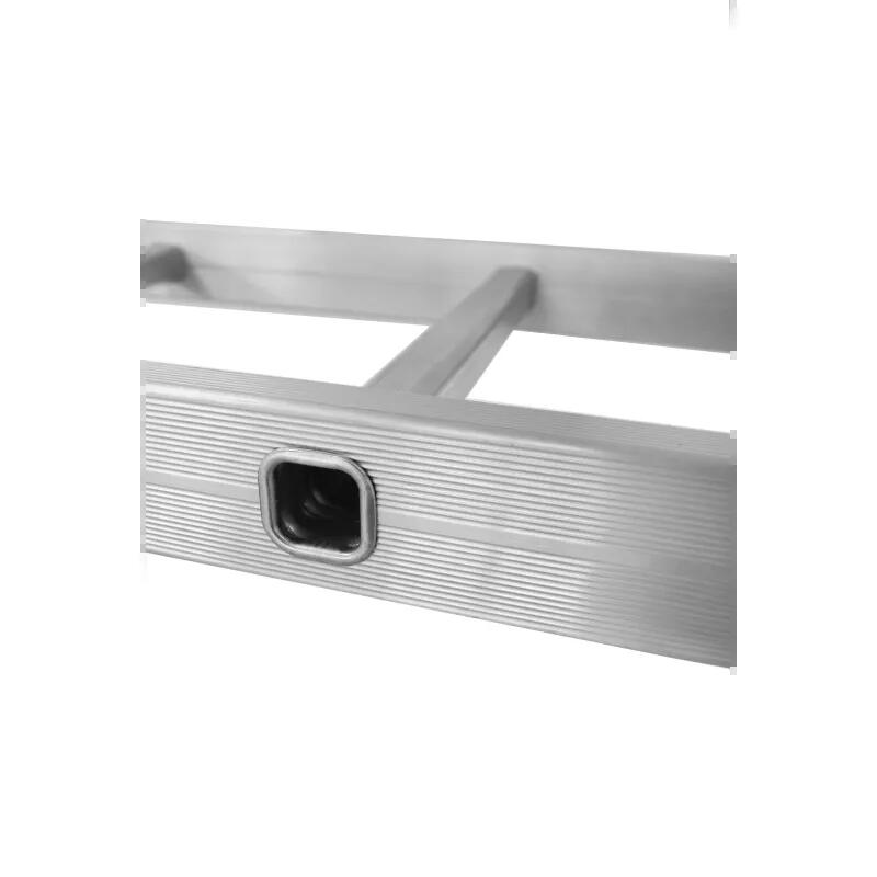 - Are doi stabilizatori cu o sectiune transversala a profilului de 62x17 mm care sunt dotati la capete cu elemente antiderapante, ceea ce minimizeaza riscul alunecarii scarii. Aceste elemente sunt nituite pe profilul stabilizatorului, iar in final stabilizatorul este insurubat pe scara folosind suruburi cu piulite autoblocante.