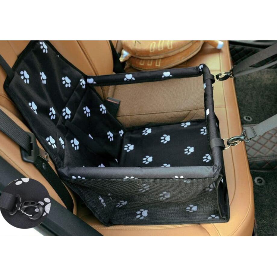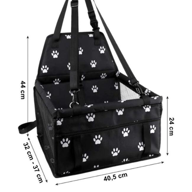 Scaun auto pentru caine/pisica, Mufart, textil, cu buzunar si centura, negru, 40x37x44 cm