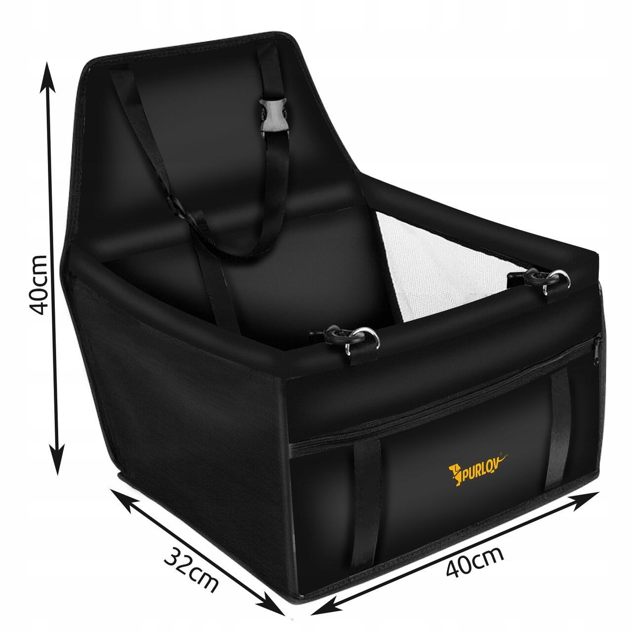 Scaun auto pentru caine/pisica, Purlov, textil, impermeabil, cu centura, negru, 40x32x40 cm