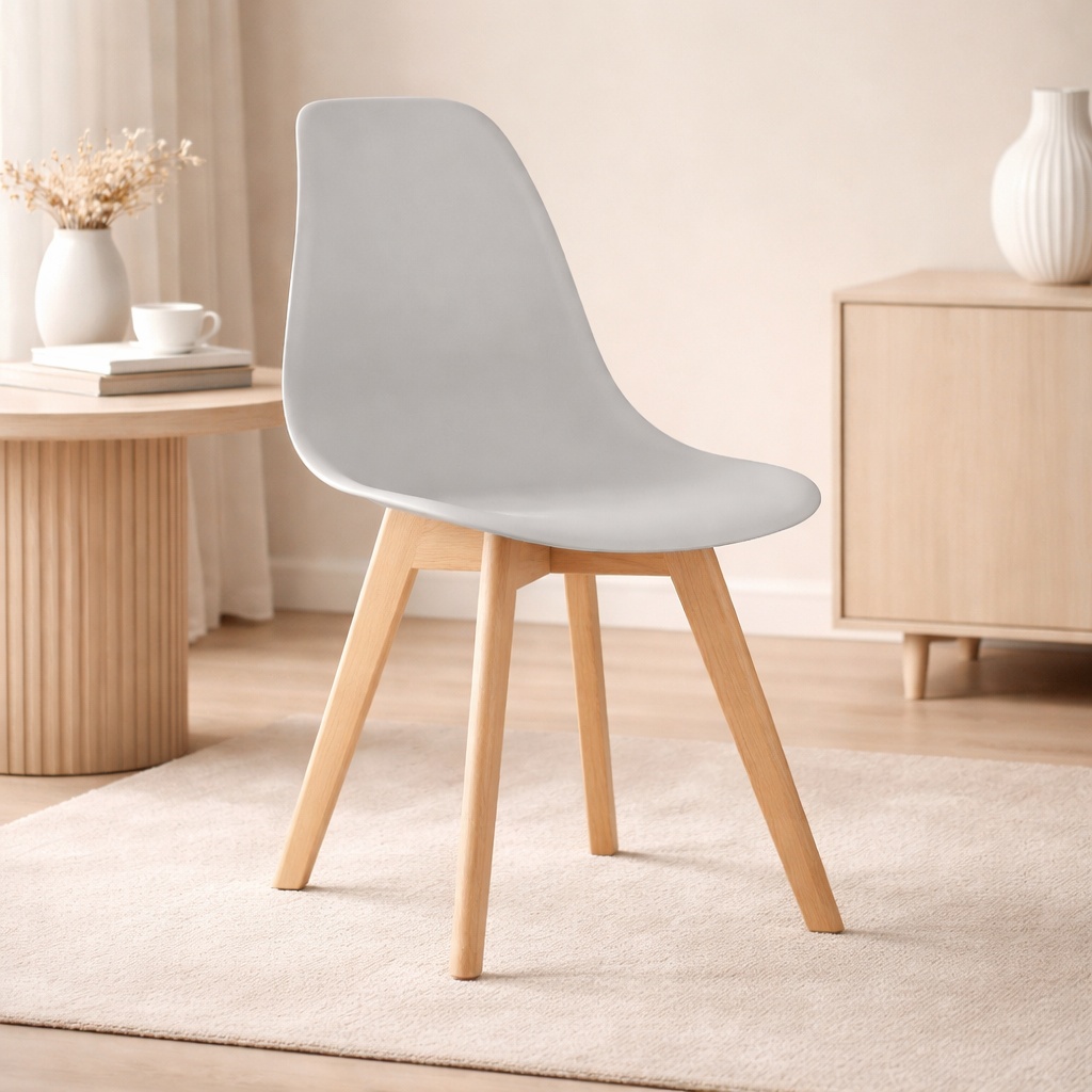 Scaun bucatarie/living, Artool, Kito, PP gri, picioare lemn natur, 46x54.5x80 cm