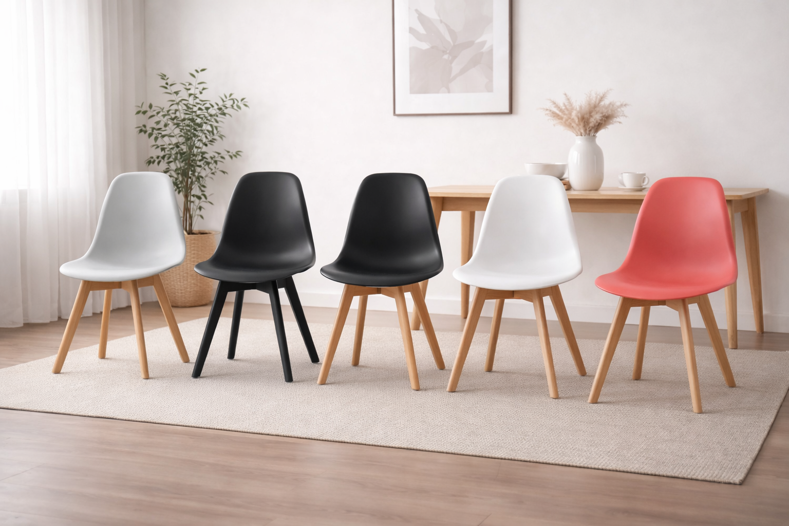 - Design versatil: Combinatia dintre lemn si polipropilena ii atribuie un aspect modern si minimalist, integrandu-se perfect in mai multe stiluri de interior