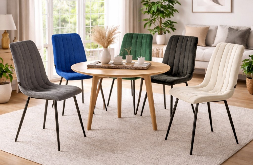 - Se distinge printr-un sezut moale, matlasat, care asigura confortul. Tapiteria din catifea cu tesatura ofera un look elegant si este foarte fina la atingere.