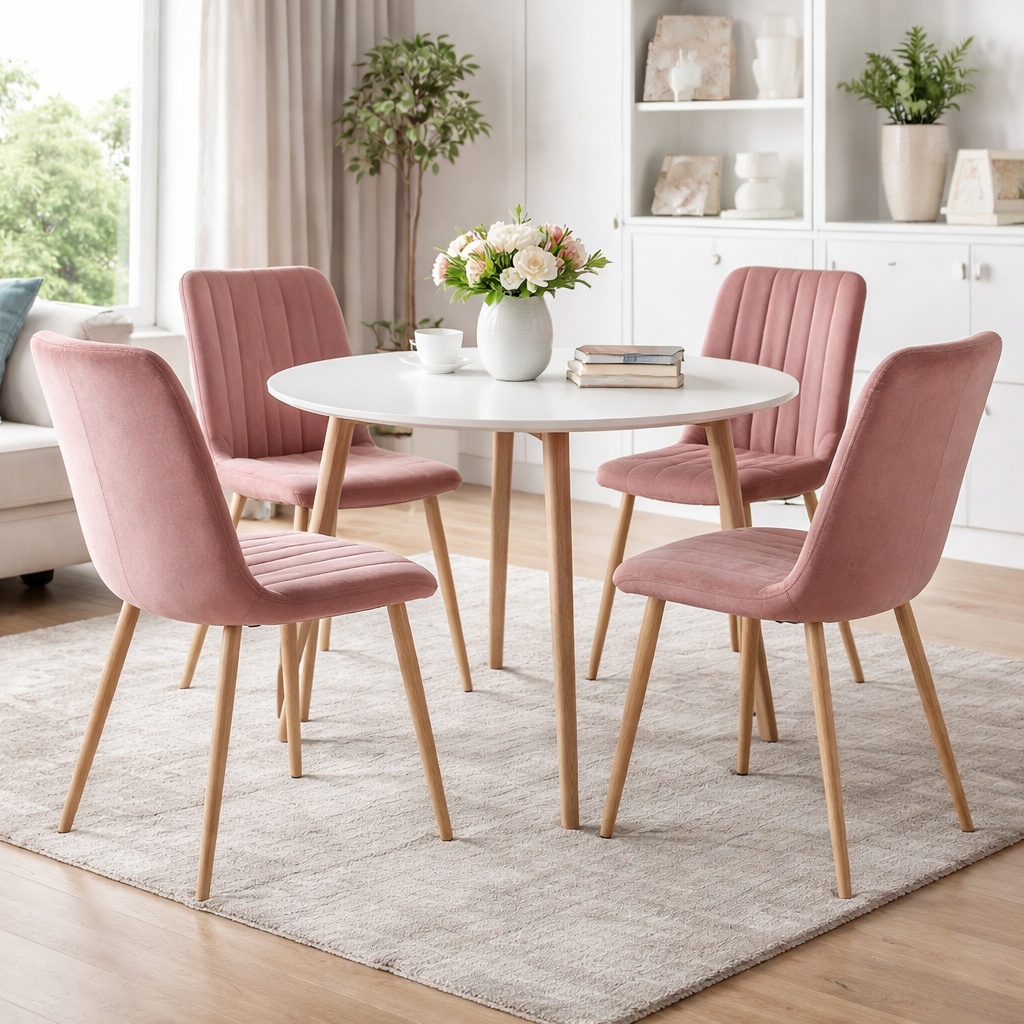 Scaun stil scandinav, Artool, Lava, catifea, lemn, roz, 43x51x90 cm