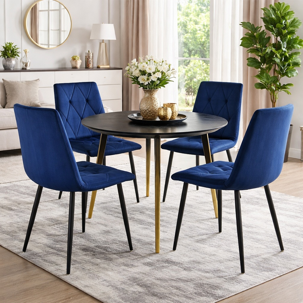 Scaun bucatarie/living, Artool, Libra, catifea bleumarin, picioare metal negru, 44x40x88.5 cm