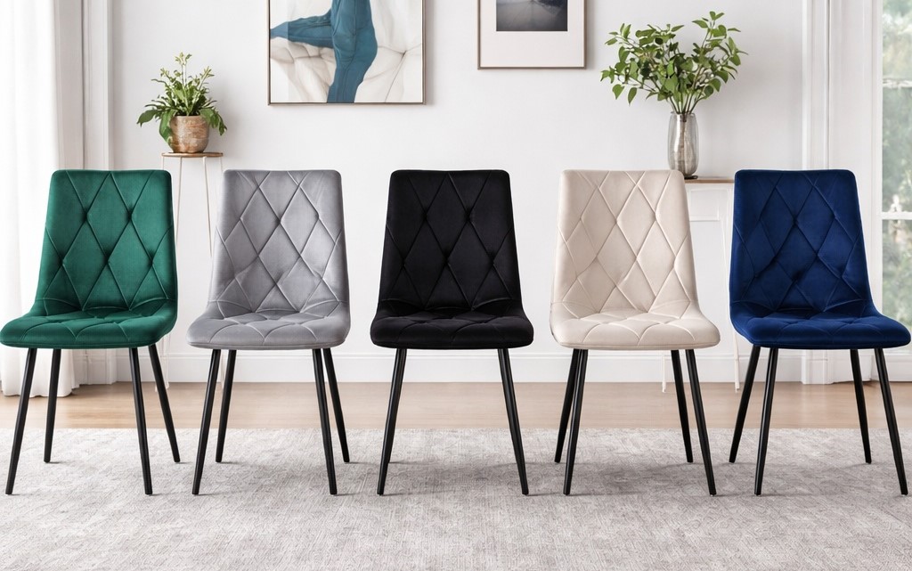 - Design modern: Combinatia dintre tapiteria din catifea si structura metalica ii confera un aspect sofisticat