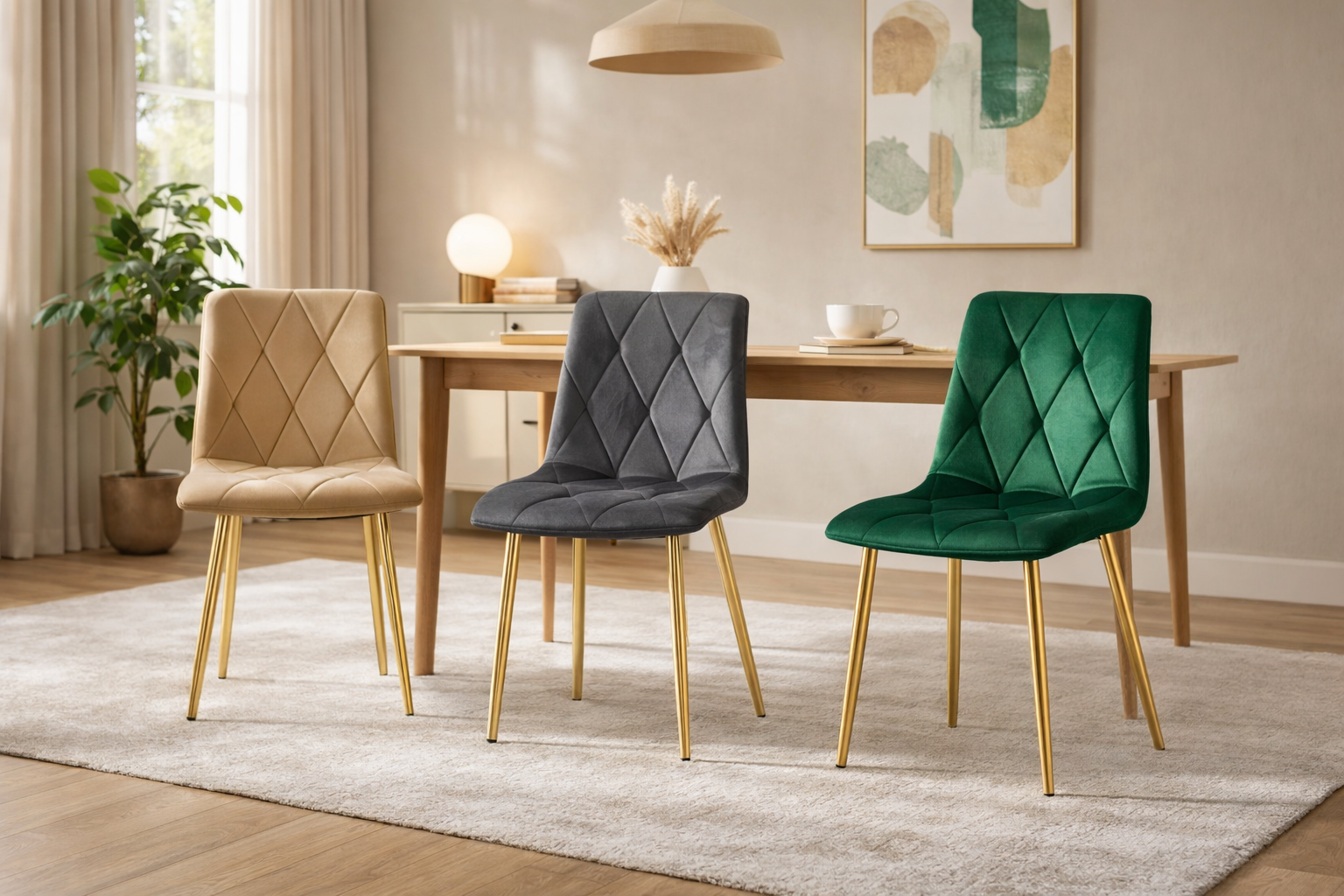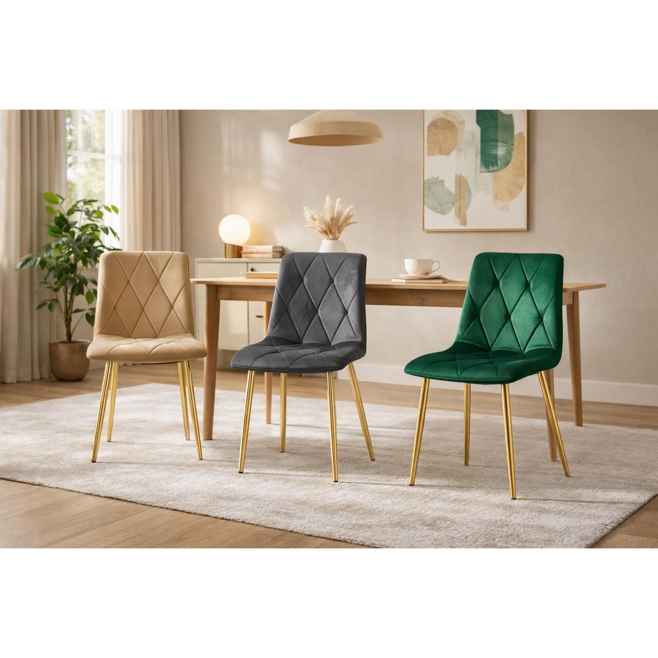 - Aspect elegant: Tapiteria din catifea si picioarele aurii adauga un plus de stil si rafinament in orice incapere