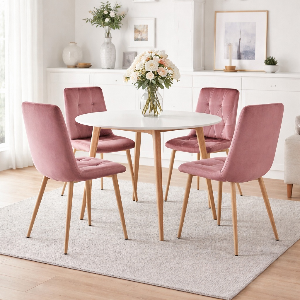 Scaun bucatarie/living, Artool, Libra, catifea, metal, roz, 45x54x86.5 cm