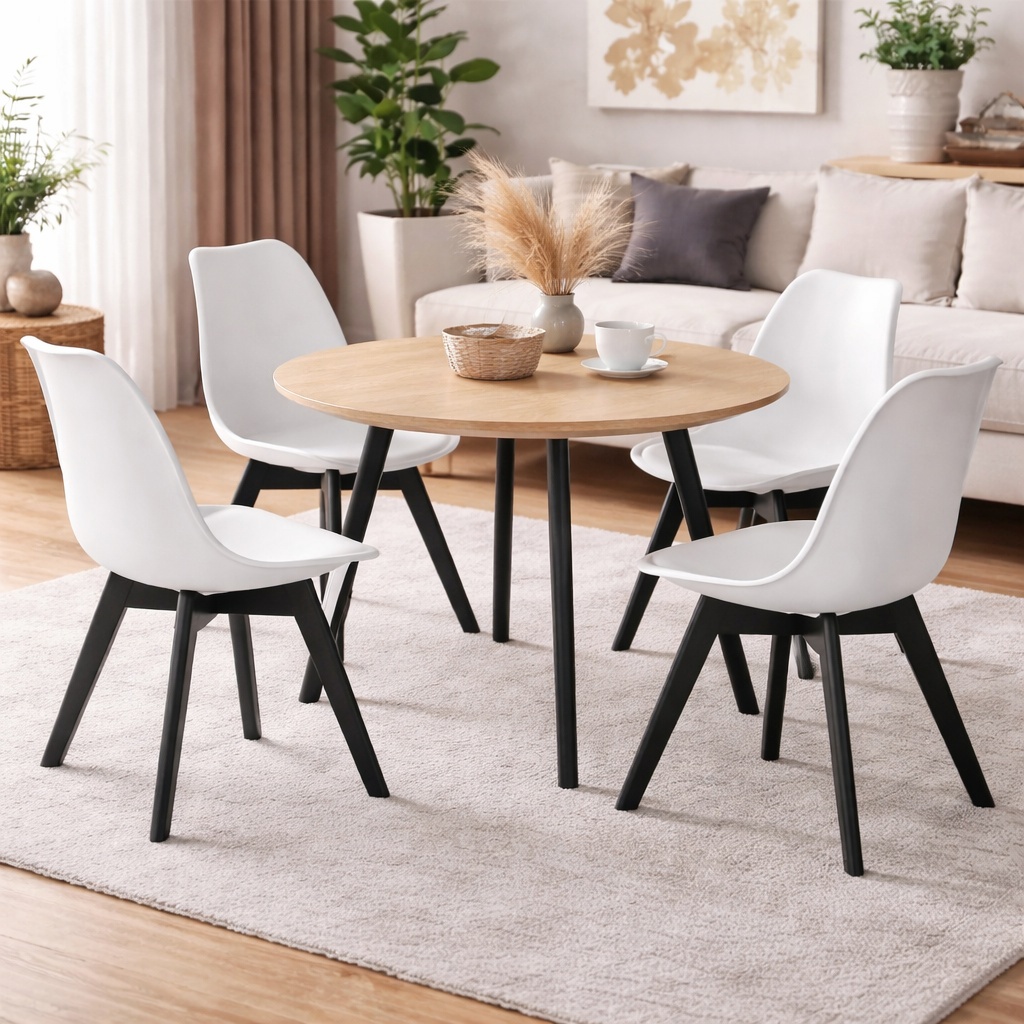 - Design versatil: Combinatia dintre polipropilena si piele ecologica ii atribuie un aspect modern si minimalist, integrandu-se perfect in mai multe stiluri de interior