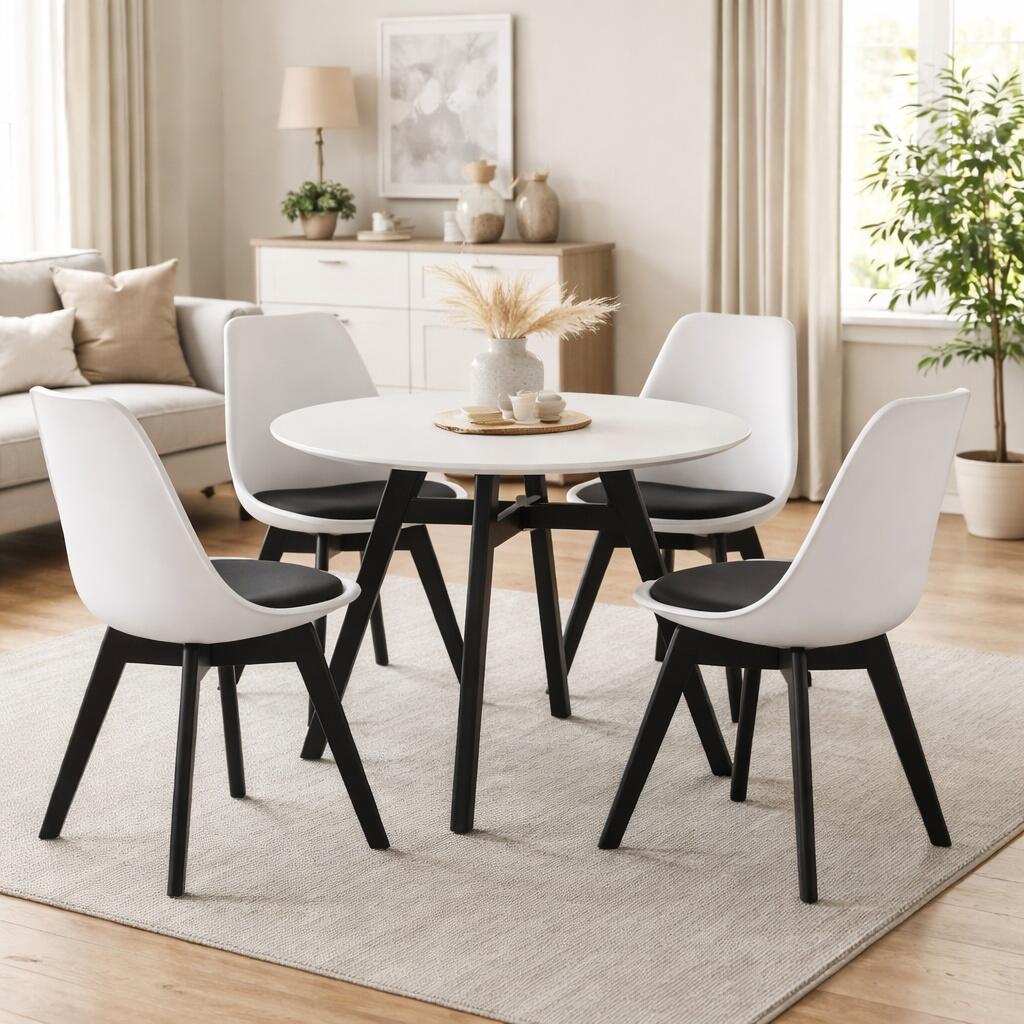 Scaun bucatarie/living, Artool, Mark, PP alb, picioare negre, perna piele ecologica neagra, 49x43x82 cm