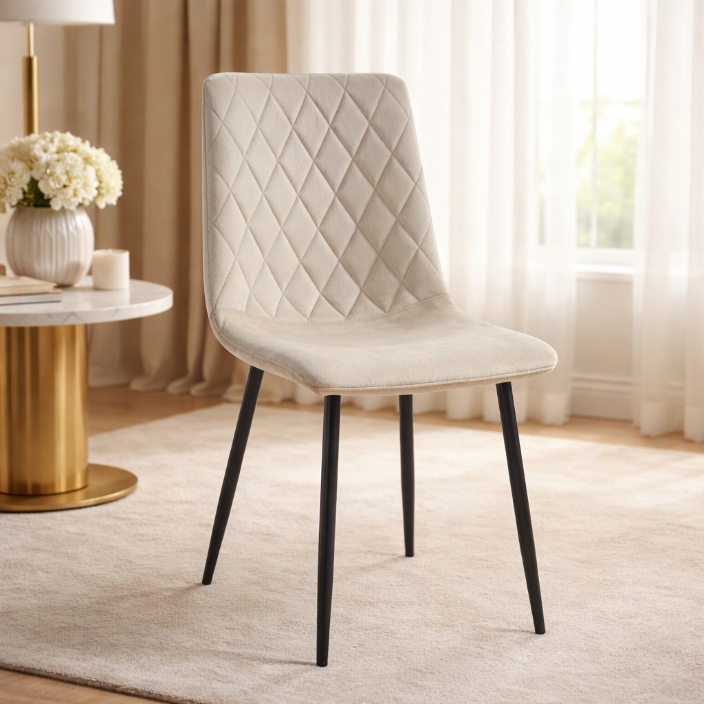 Scaun bucatarie/living, Artool, Turin, catifea bej, picioare metal negru, 44.5x53x88.5 cm