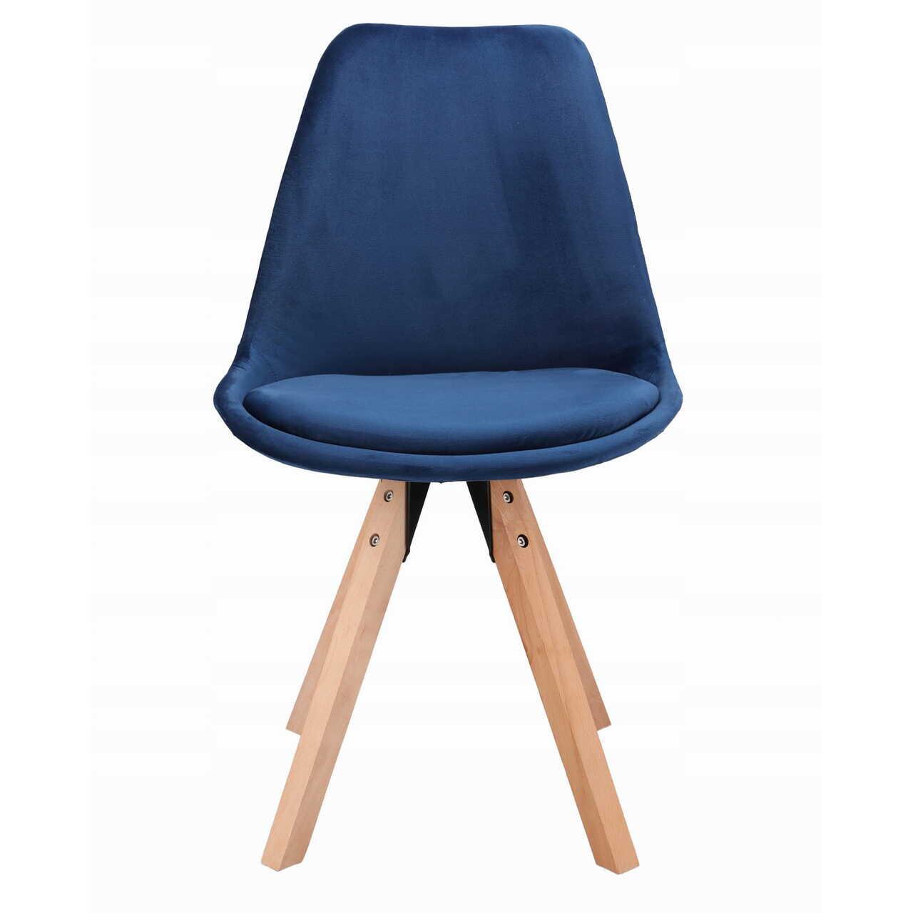 Scaun bucatarie/living, Jumi, Saida, catifea, lemn, albastru si natur, 49x52x83 cm