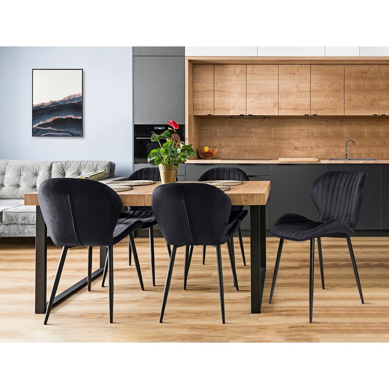 Scaun bucatarie/living, Jumi, Veira, catifea, metal, negru, 52x57x85 cm