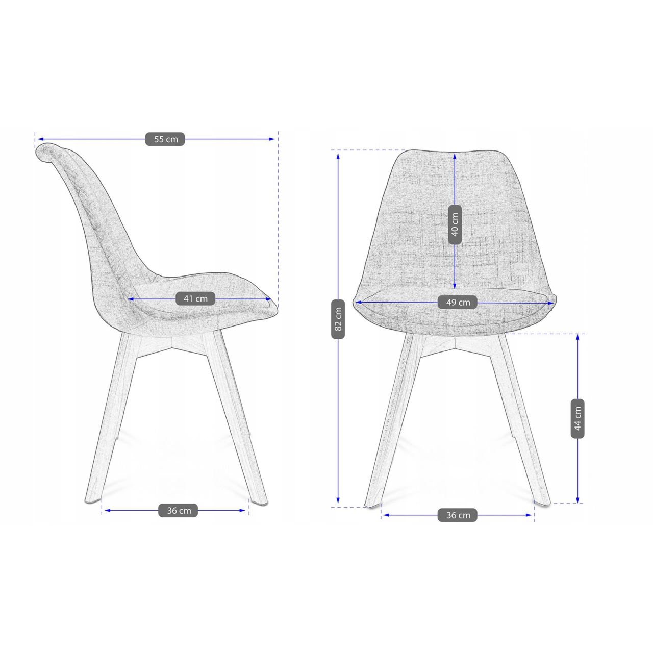 Scaun stil scandinav, stofa, lemn, gri, 49x55x82 cm, Alta