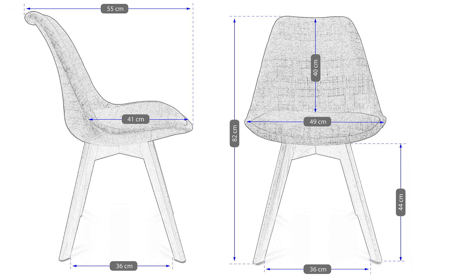 Are un spatar perfect profilat, acoperit cu material textil, care, combinat cu o perna moale asezata pe scaun, ofera un confort deosebit. Picioarele din lemn de fag usor asigura stabilitate si durabilitate. Scaunul este foarte practic si functional.