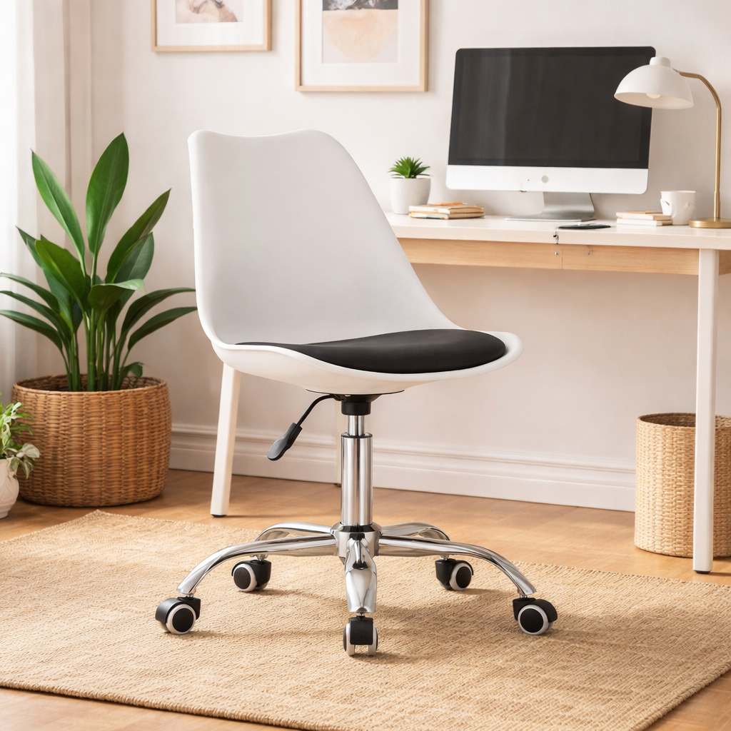 - Mobilitate sporita: Echipat cu roti din cauciuc, scaunul ofera o deplasare lina si protejeaza suprafetele podelei