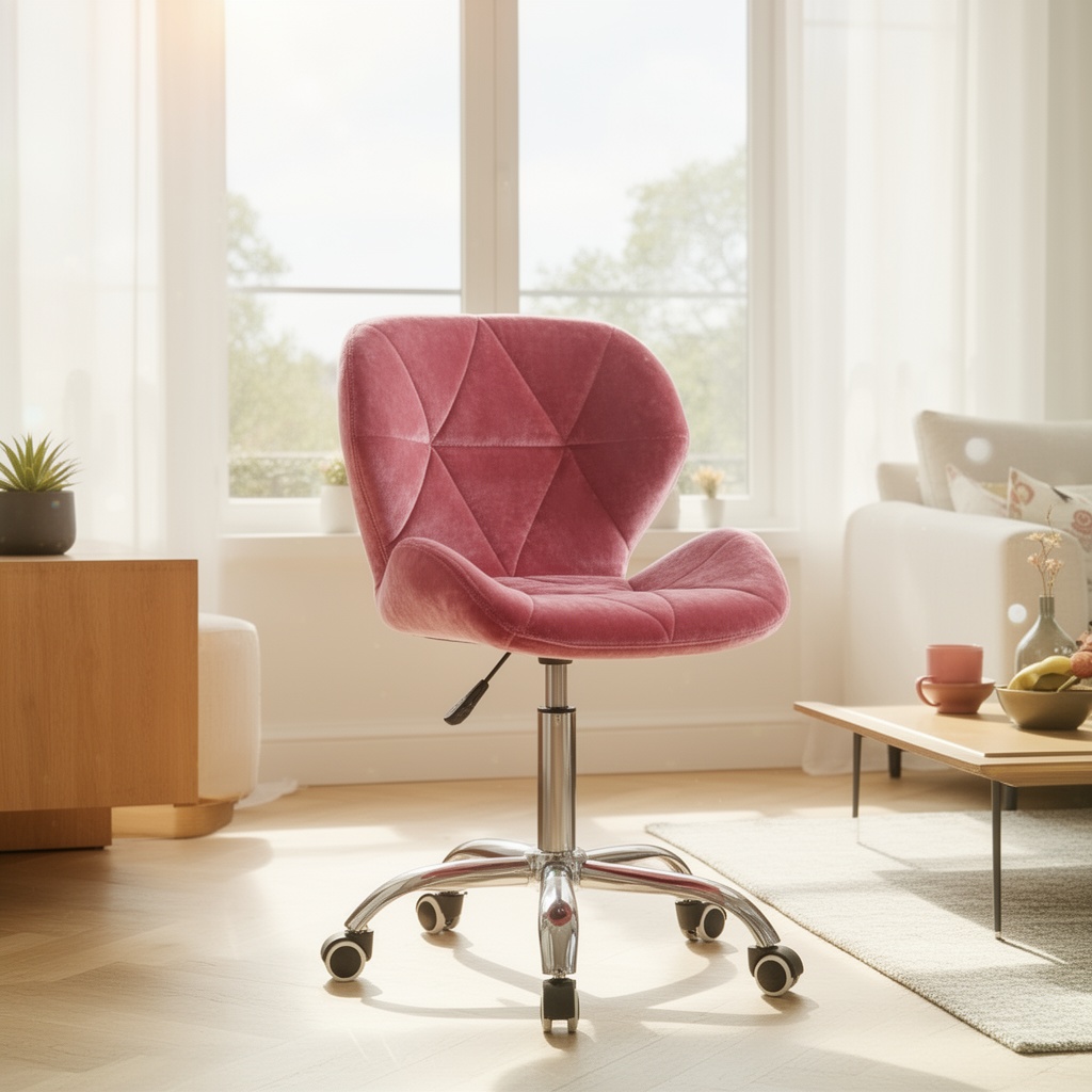 Scaun de birou, Artool, Avola, rotativ, catifea, roz inchis, 53.5x55x72.5-86.5 cm