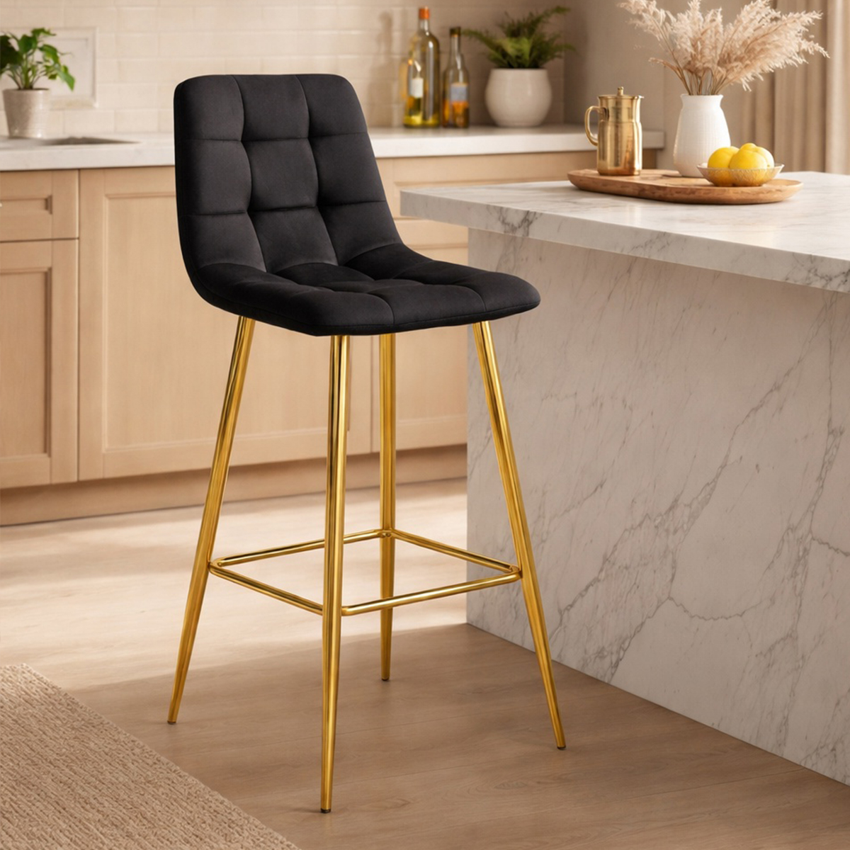 Scaun de bucatarie/bar, Artool, Arceto, catifea, metal, negru si auriu, 43.5x49x102 cm