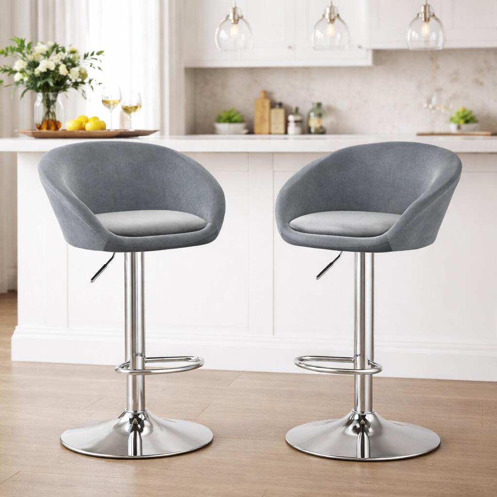 Scaun de bucatarie/bar, Artool, East, rotativ, catifea, gri si argintiu, 53x46x81-103 cm